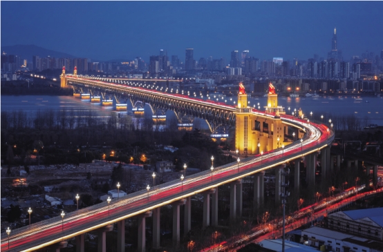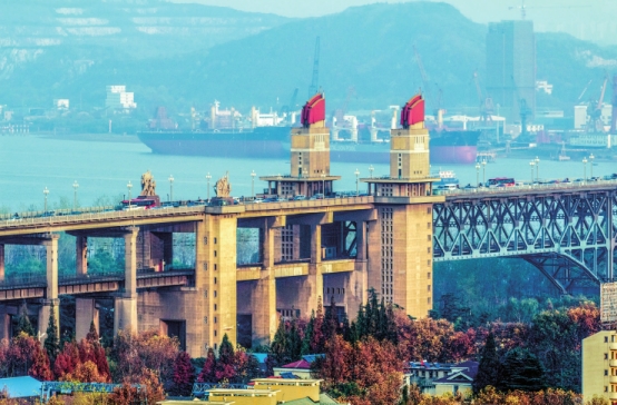 南京长江大桥是国内首次自行设计、施工和安装的最长铁路、公路两用双层现代桥梁。1959年开始施工。1968年10月1日铁路桥正式通车。1969年元旦公路桥通车。江面正桥长1576米;下层铁路桥包括两岸引桥长6722米;上层公路桥长4588米,宽19.5米。