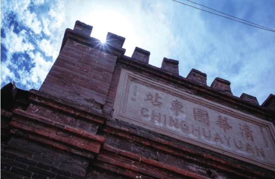 1909年中国人自主设计修建的第一条铁路--京张铁路建成通车。后因运力加大,总设计师詹天佑于次年(1910年即宣统二年)又增设了五座车站,清华园车站就是其中之一。清华园的名字来自康熙年间这里所建的一处园林--熙春园,清道光二年(1822年)熙春园分为东西两部分,其中东半部,在咸丰皇帝即位后,取“水木清华”之意改名清华园。1910年清华园车站建成,1911年清华学堂开设,二者皆取“清华”为名。